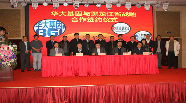 作為本次論壇的主要內容之一,華大基因公司就在我省投資設立“龍江華大公司”和建立“基因庫”、“臨床和研究中心”等事宜與哈創投集團、省科力投資公司、富德創投及東北農業大學等單位舉行了合作簽約儀式。雙方達成合作共識,表示在未來一段時間,將以合資成立的“龍江華大公司”作為華大基因科研成果應用轉化平臺,共同將華大基因的科研成果推向龍江。哈創投集團總經理孔慶濱同志代表集團上臺與華大基因等公司簽署了戰略合作協議。